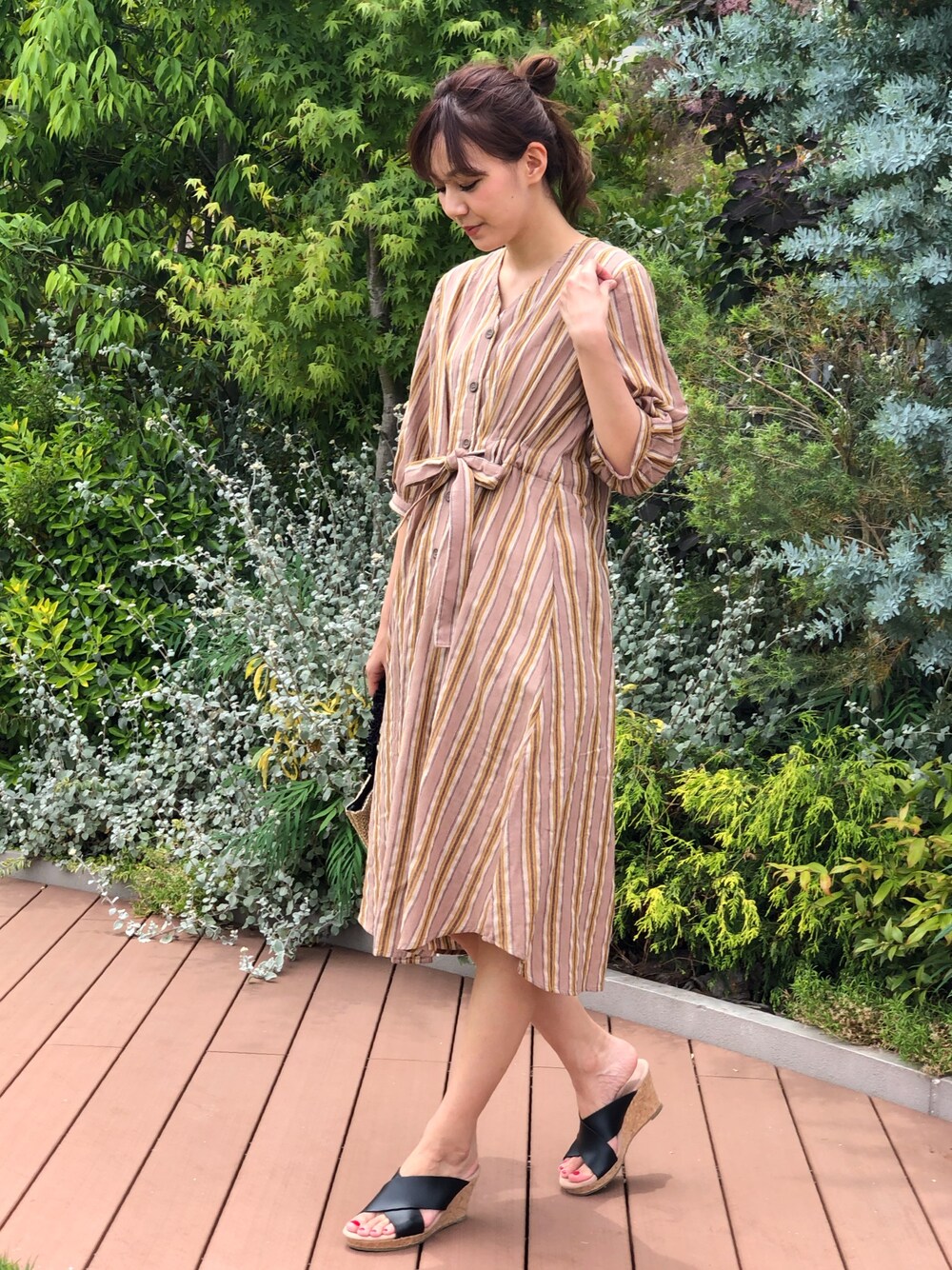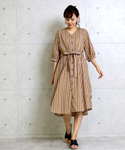libelle more staffのシャツワンピース「ストライプシャツワンピース」を使ったコーディネート