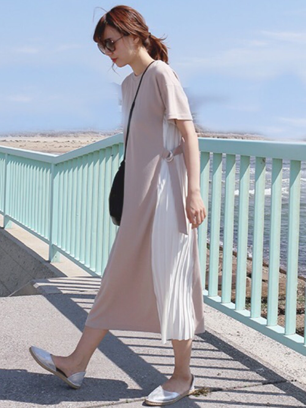 サイドがプリーツで可愛いワンピース。 1枚でコーデが完成するからお気に入り👗✨ スニーカーで合わせてもカジュアルで可愛い!