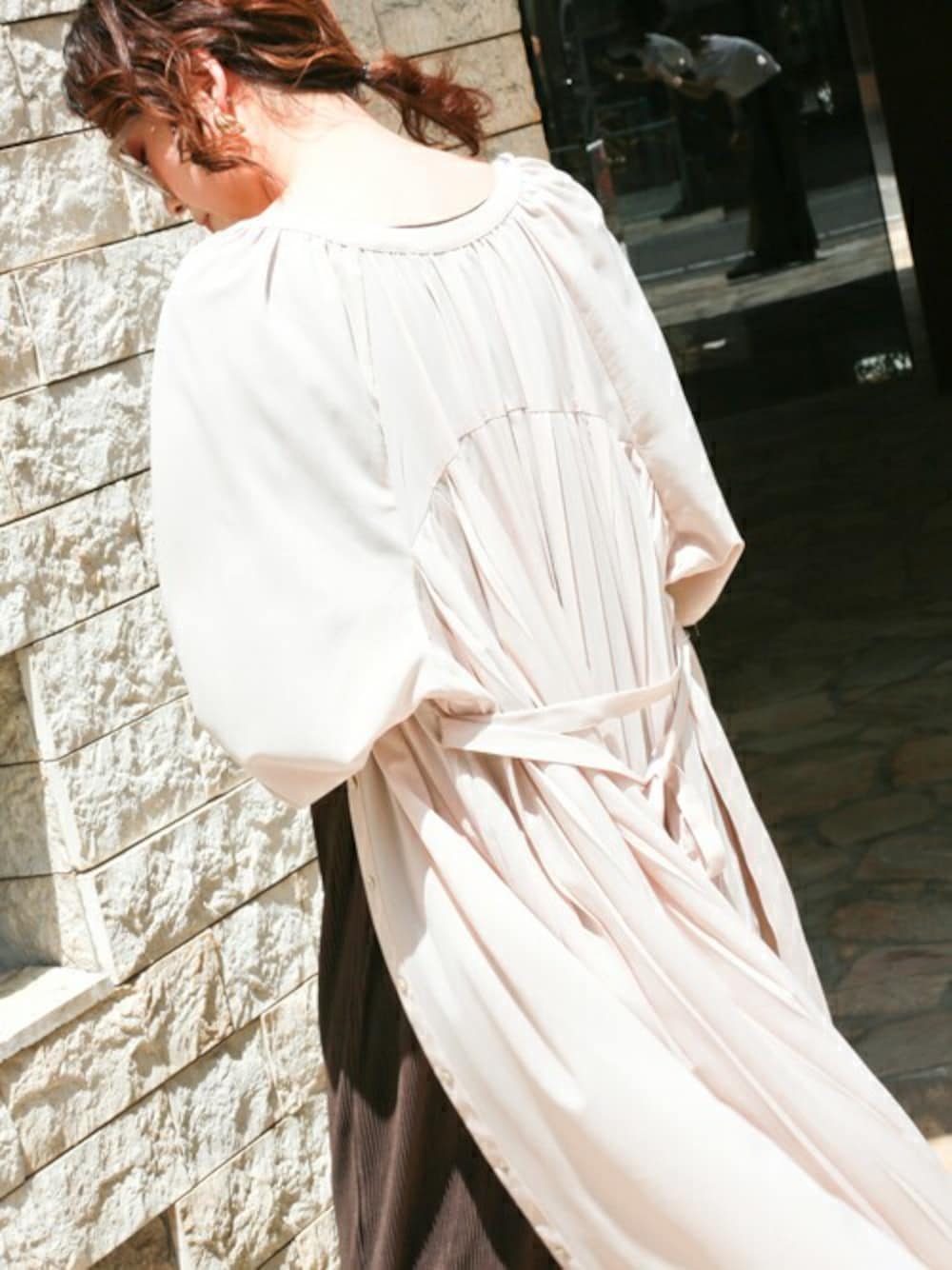軽やかに着たいバックプリーツシアーガウン。 キレイ目に着て頂ける、透け感が楽します。 ワンピースとしても◎