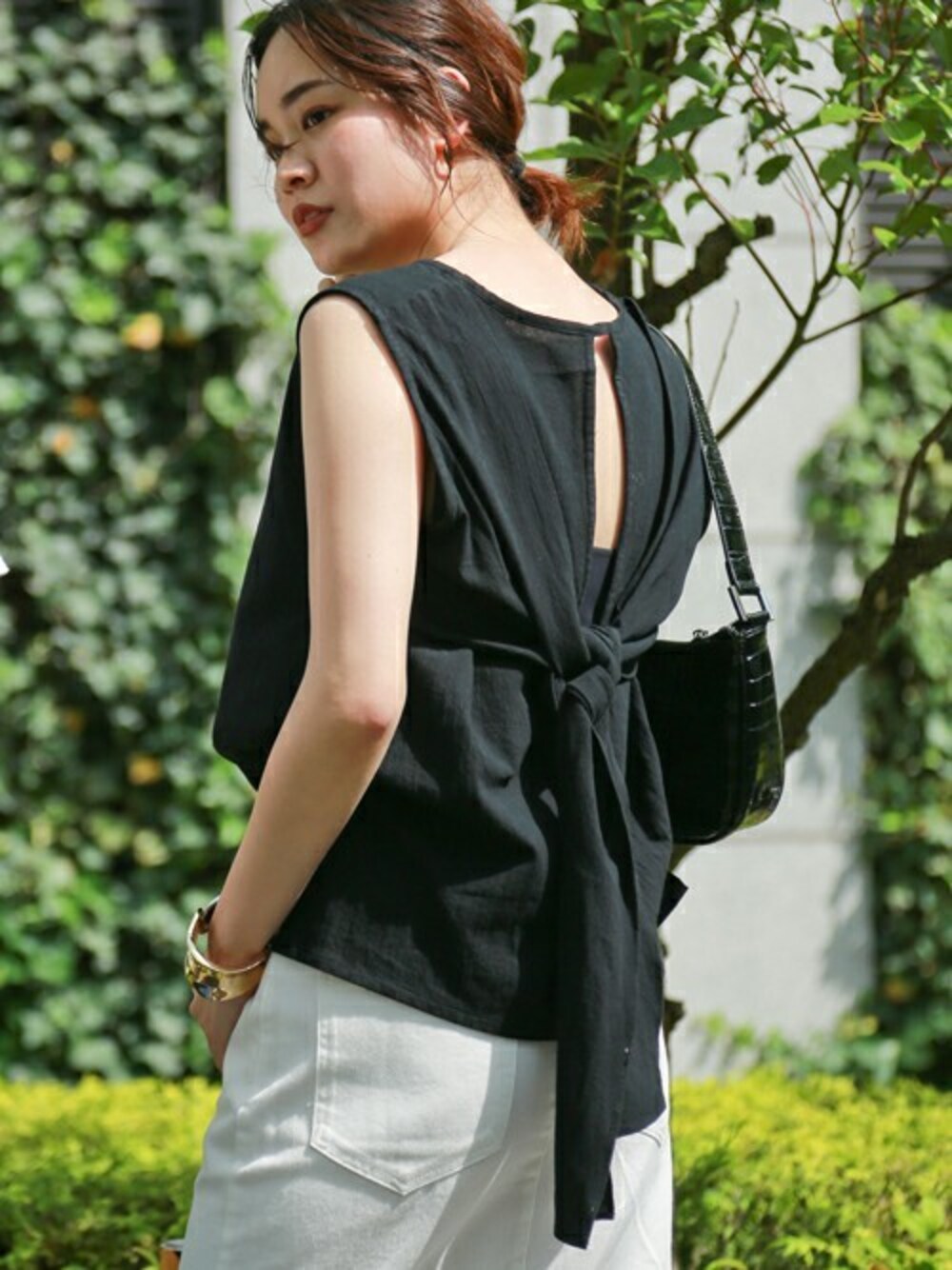 libelle more staffのTシャツ/カットソー「ボイルバックリボン ノースリーブ」を使ったコーディネート