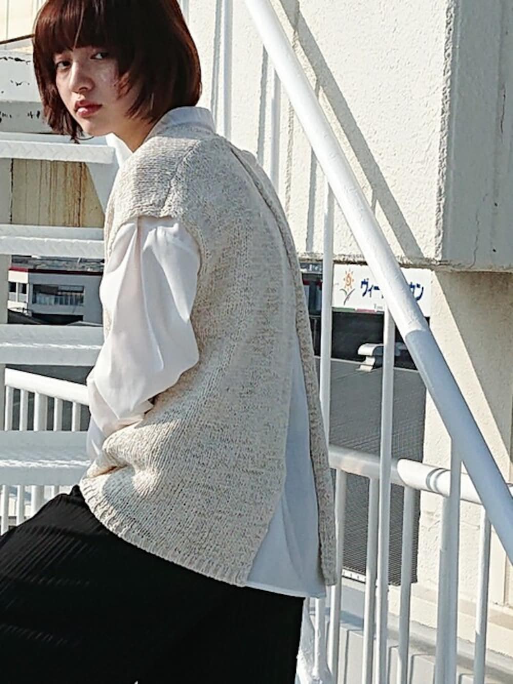 libelle more staffのベスト「バックスリット ニットベスト」を使ったコーディネート