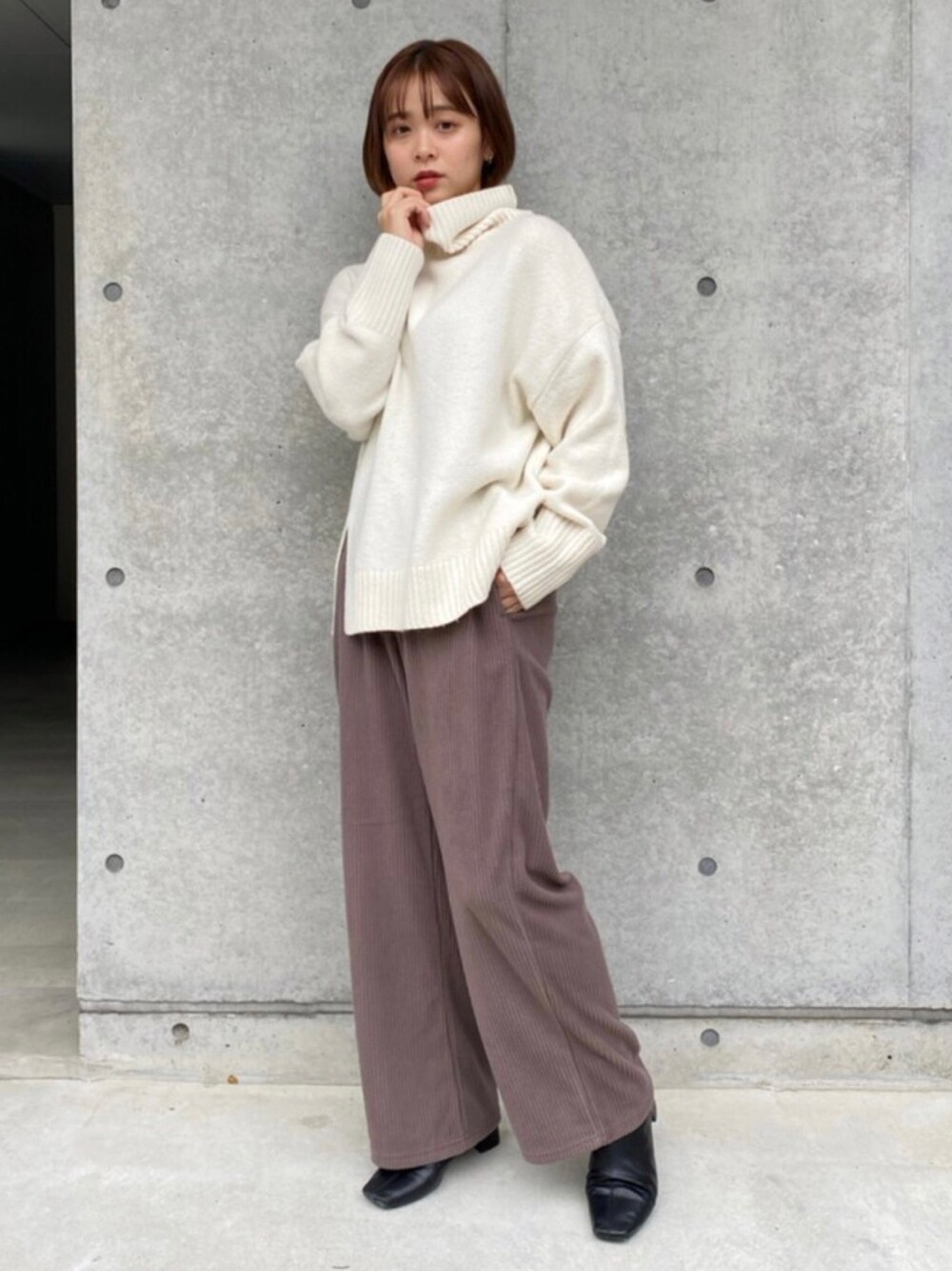 チクチクしない肌触りの良い白ニットと 軽くて温かいくすみブラウンのパンツ どちらも秋冬に活躍してくれそうです😊🤍