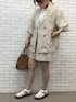 ご覧いただきありがとうございます♪ ◻︎◻︎◻︎------------------------------◻︎◻︎◻︎ ▷libelle more 『ドライタッチ ダブルジャケットセットアップ』 ゆるっとしたダブルジャケットにショート丈パンツのセットアップ 程よいハリ感で身体のラインを拾い過ぎずスッキリ見え✴︎ 今回は定番の白Tシャツと合わせてきれいめカジュアルコーデ☺︎ ジャケットとパンツは別々にも着用◎ 組み合わせ一つ一つで幅広いコーデが楽しめるアイテムです♪ Instagram ▷▷▷ @libellemore ◻︎◻︎◻︎------------------------------◻︎◻︎◻︎ スタッフコーディネート モデル:155㎝
