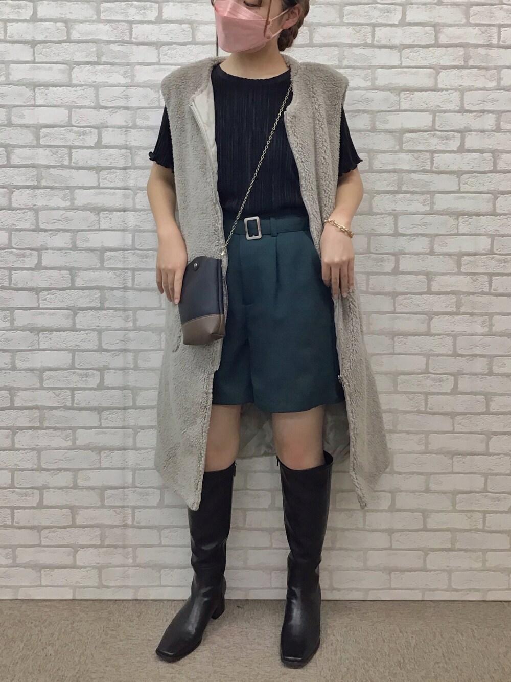 libelle more staffのベスト「ボアロングベスト」を使ったコーディネート