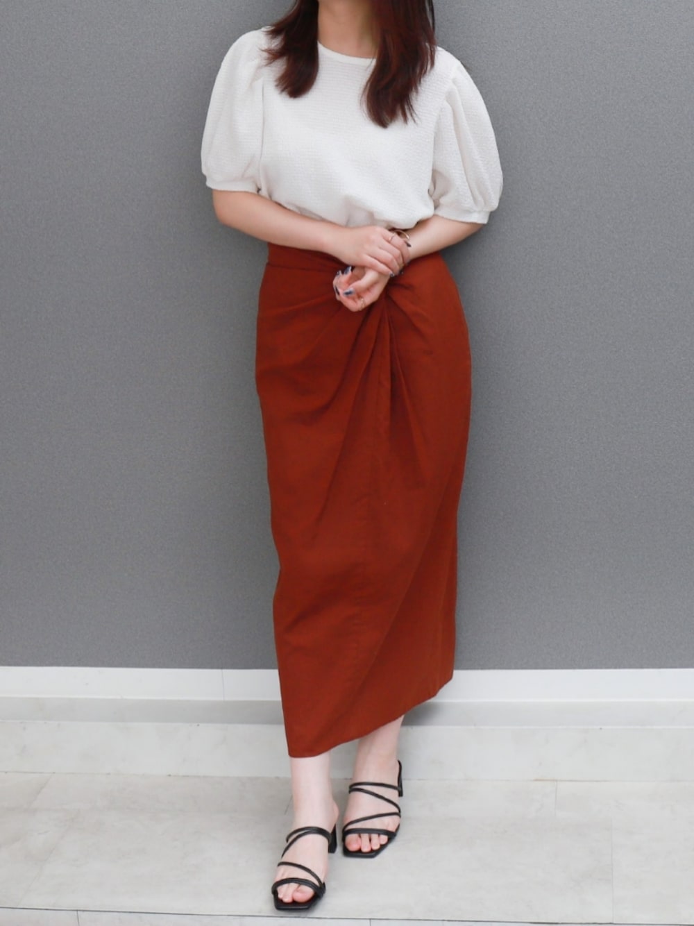 通勤にも使えるキレイめカジュアルスタイル テラコッタのタイトスカートで 一足早く秋気分🍂 @libellemore