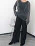 秋を意識したブラックコーデ 異素材や「柄」を取り入れて立体感と動きをプラス。 透け感のあるトップスは暑さの残る秋に大活躍のアイテムです パンツは 「セルフカカット可能」✂️ instagram @libellemore