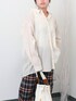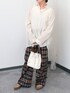 暑いけど、秋感を取り入れたい! 長袖シャツは 透け感のあるコットン素材で着ていても暑くない ブラウンの入ったチェック柄パンツで秋っぽく🍁 instagram @libellemore