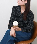 libelle more staffのシャツ/ブラウス「ランダムドットスタンドフリルリボンブラウス」を使ったコーディネート