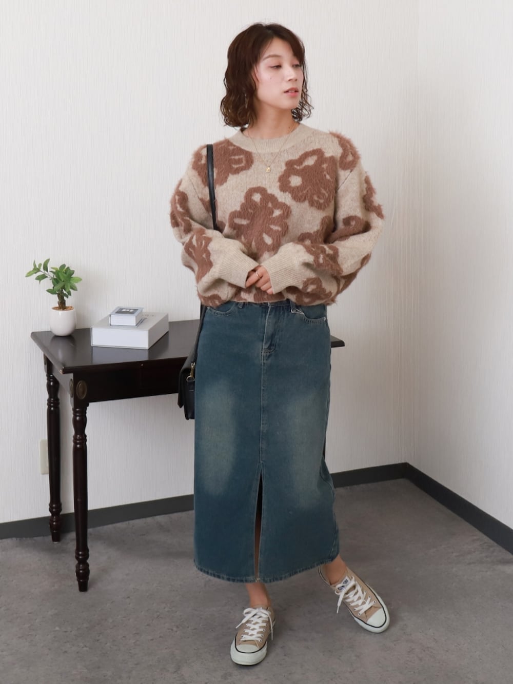 libelle more staffのニット/セーター「BIGフラワー柄ジャガードニットプルオーバー」を使ったコーディネート