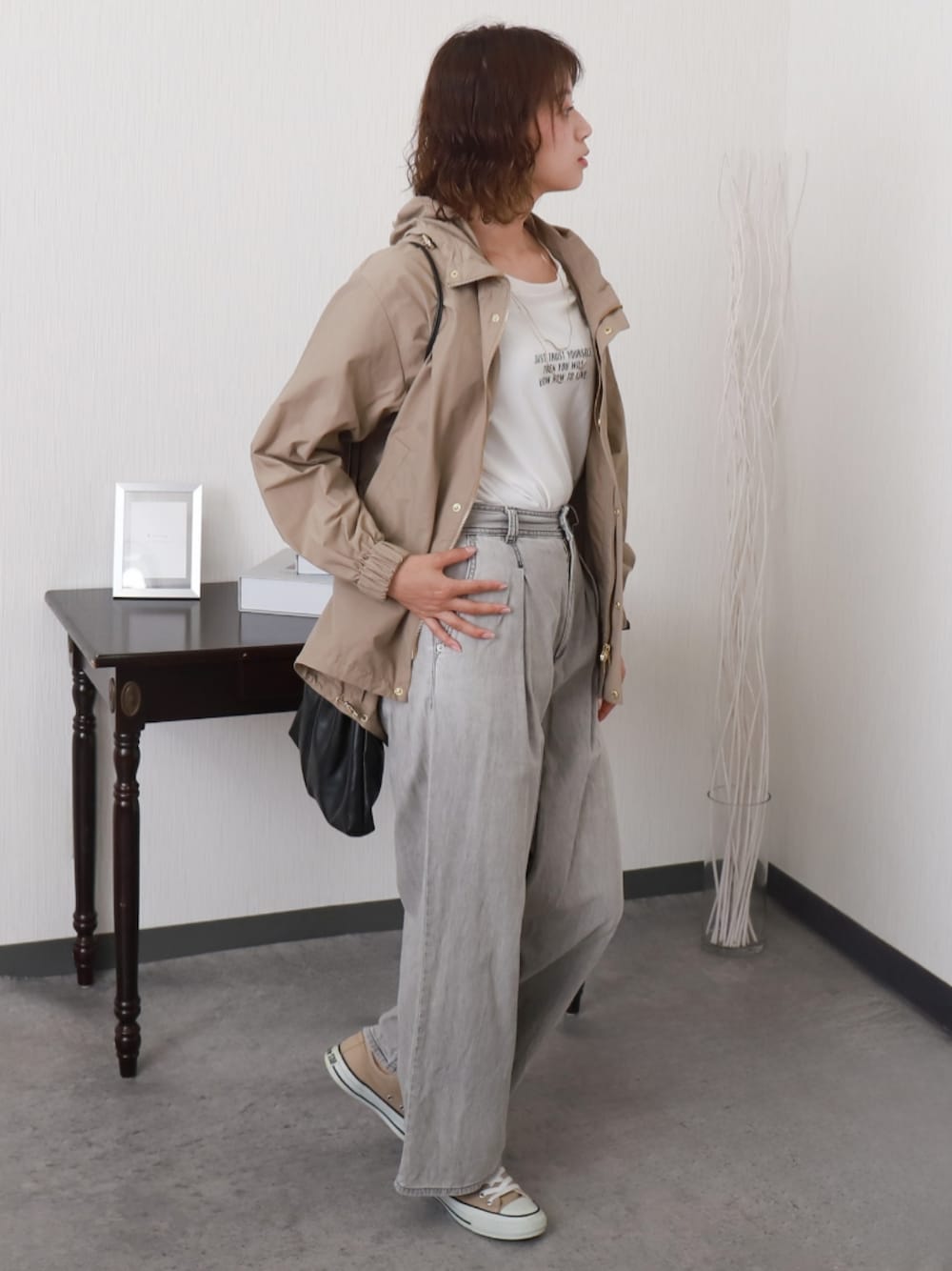 libelle more staffのマウンテンパーカー「【NC撥水加工】裾ドロストミドル丈マウンテンパーカー」を使ったコーディネート
