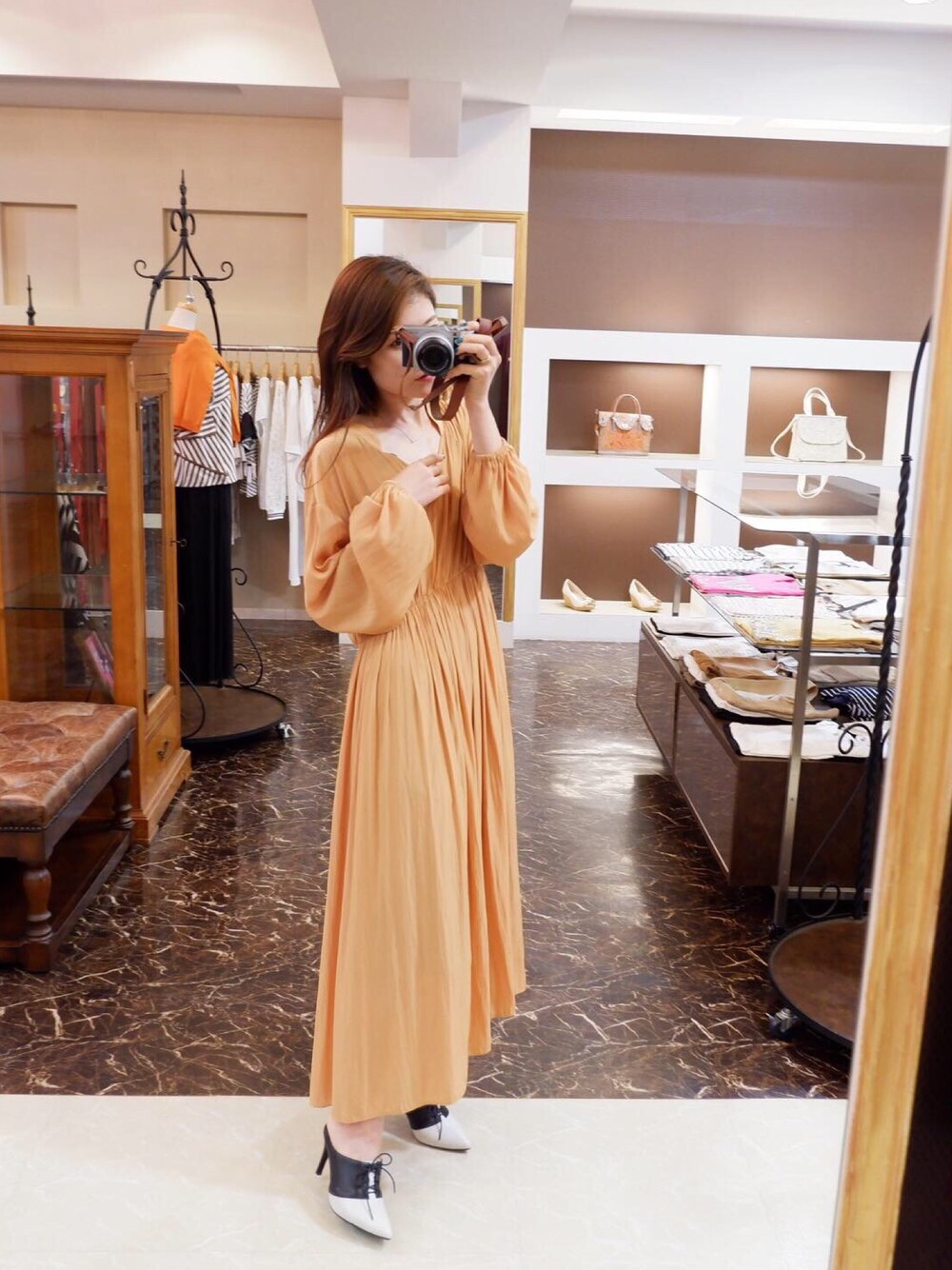 バルーンスリーブって 体が華奢にみえるからスキ🙆♀️♥️ . 体が泳ぐサイズ感なのに ズルズルしなくて ちゃんとスッキリ見えるのも このワンピのいいとこ🙃✨ . . instagram 👉 @emeraude_staff7