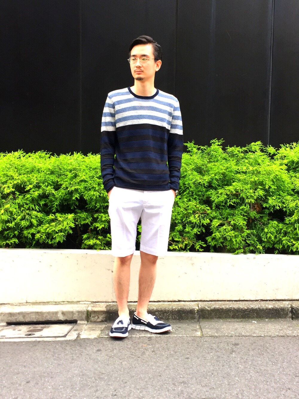 初夏にぴったりな爽やかなコーディネート。ネイビーとホワイトで清涼感を演出しています。
