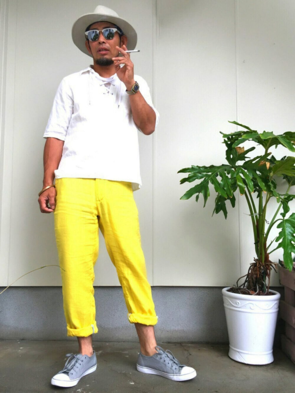 (○´∀`)ノオハーヨゥ!! (遅) 雨…朝から… ゴロゴロ… たまに娘がYouTube見ながら練習中の オリラジのパーフェクトヒューマンのダンスを見てゲラゲラ笑ったり、レクチャーしたり… そして、タバコがきれそうなので…コンビニに行こうかな〜 で…何故か…コンビニに行くだけなのに… 着替えてパシャリ‼︎ すっかりWEAR中毒… そして、今日も黄色! イエロ〜〜〜マン‼︎
