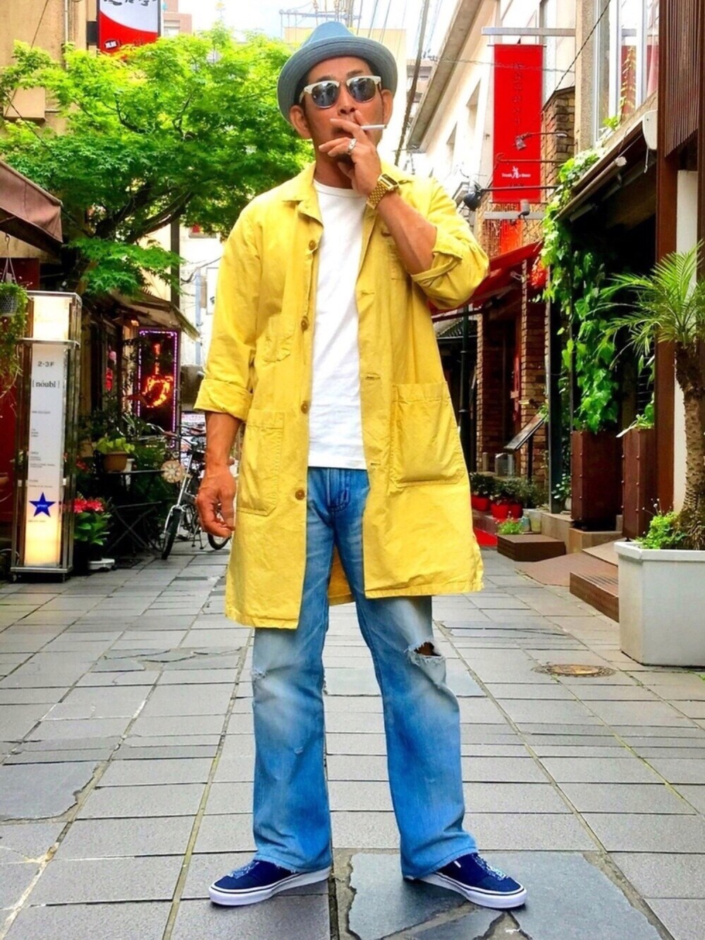 芳人のデニムパンツを使ったコーディネート