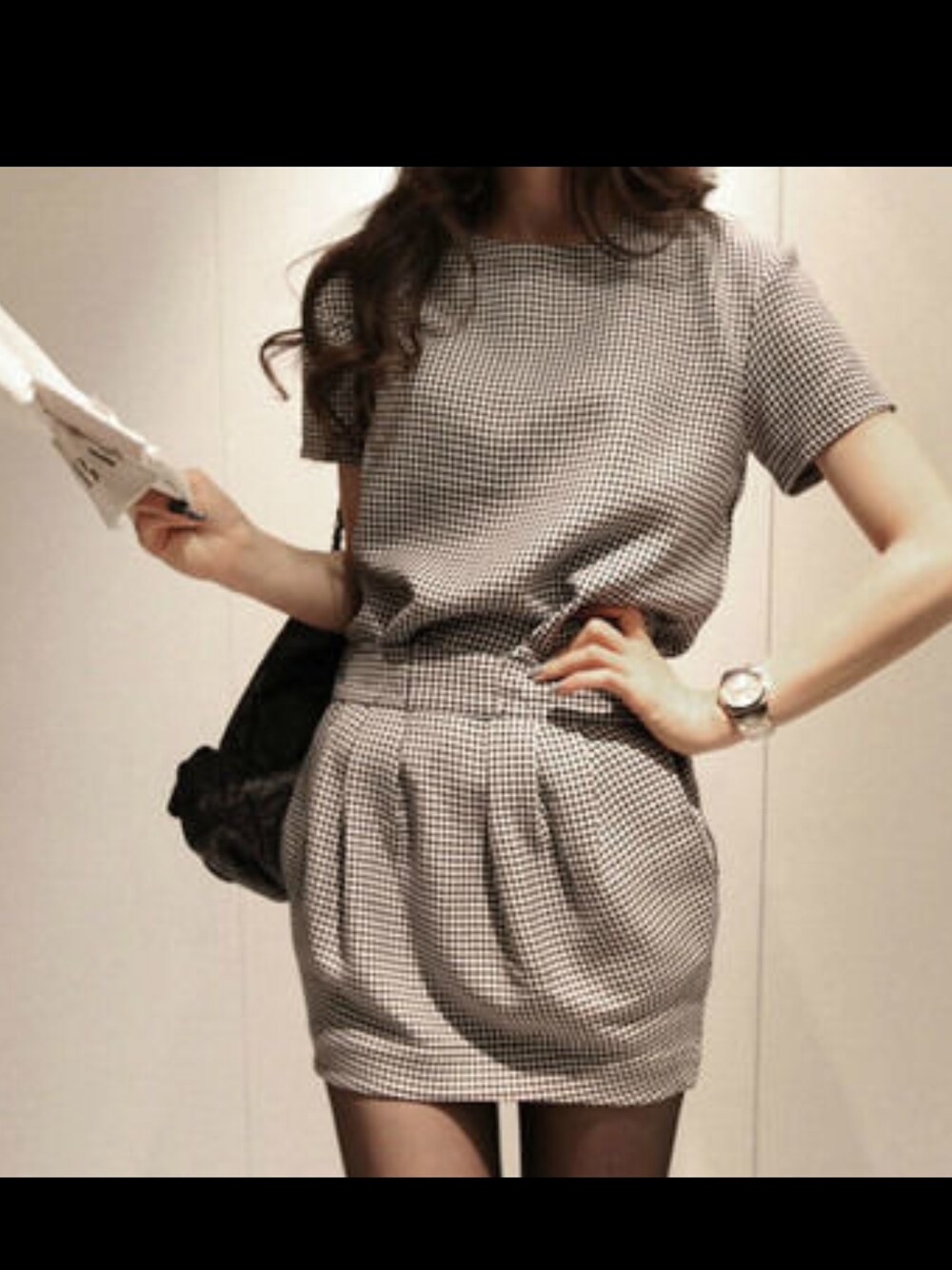 グレー系のワンピースを着用したレディースの春コーディネートの1枚目の写真