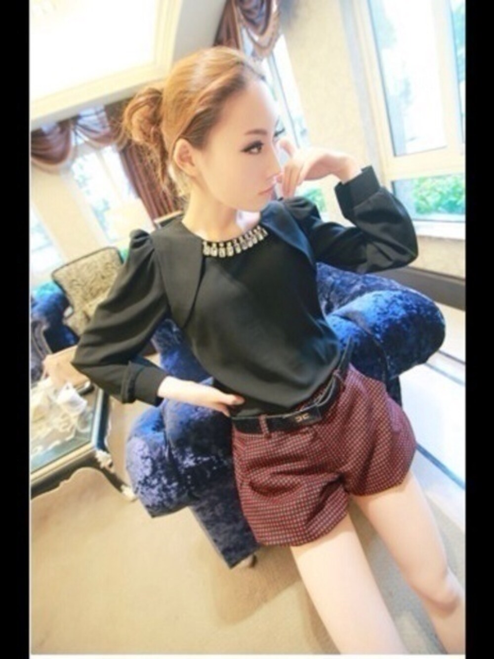 ブラック系のシャツ/ブラウスを着用したレディースの春コーディネートの1枚目の写真