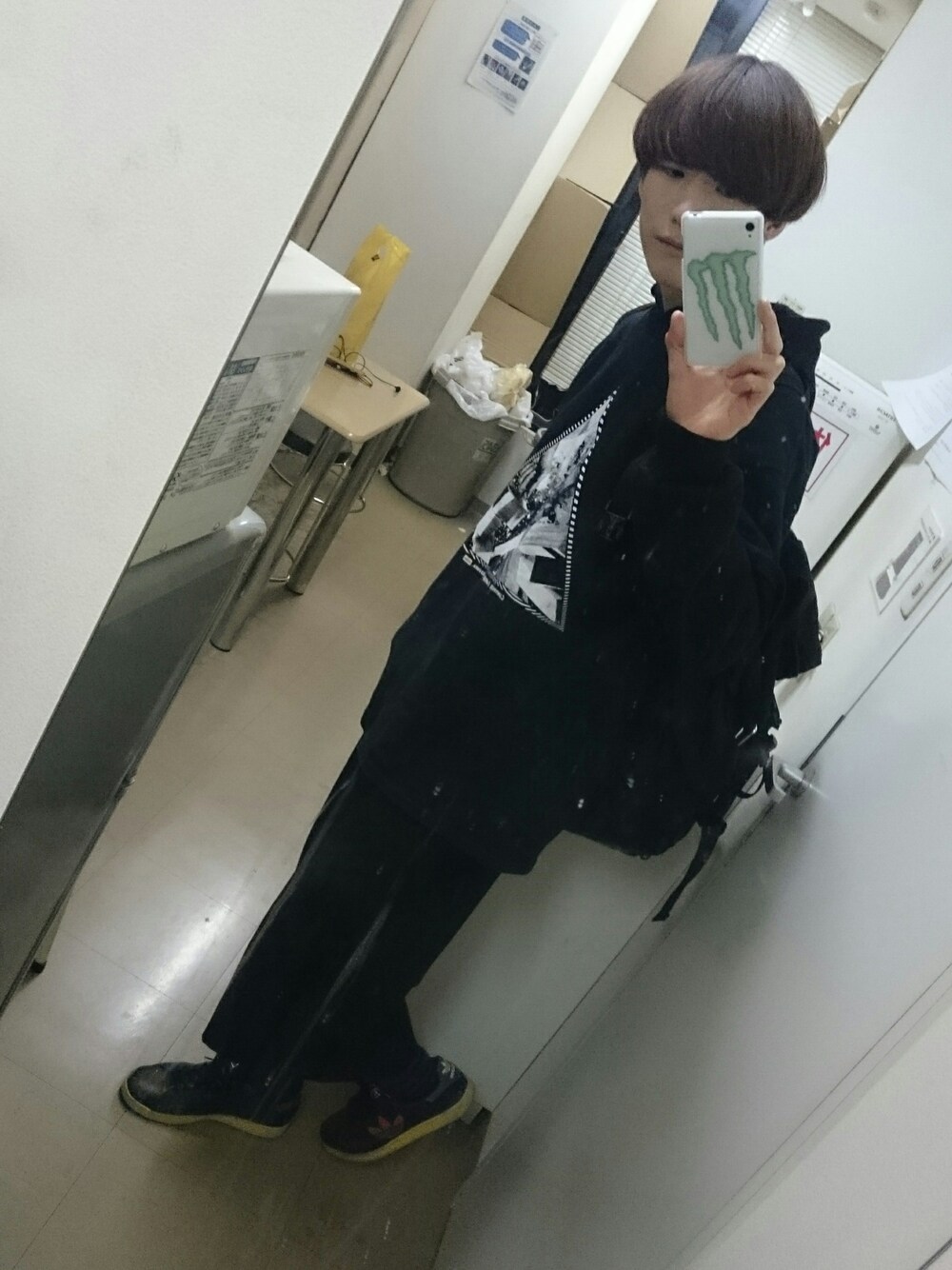 黒い!!!! なんか前に全身黒系で纏めてる人は厨ニ病だのなんだの記事を見たせいで外歩いてると周りからそう思われてるのかと不安になります(-.-)ノ 笑 鏡汚くてごめんなさい😞😞