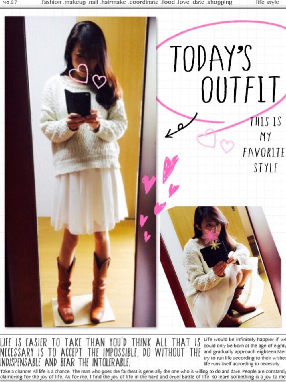 earth music&ecologyGUSOMETHINGこの画像から似たアイテムを検索できます4163お気に入り (2)37まこさんへのコメントNO COMMENTコメントはスマートフォン用アプリからご利用できます着用アイテムearth music&ecologyearth music&ecologyニット/セーター (ホワイト系)ニット/セーター探すZOZOTOWNで探すGUGUチュールワンピワンピース (ホワイト系)ワンピース探すZOZOTOWNで探すSOMETHINGSOMETHINGウエスタンブーツ ブーツ (ブラウン系)ブーツ探すZOZOTOWNで探すまこのニット/セーターを使ったコーディネート今日は暖かいので春っぽく((´艸`*)) コメント7件を表示2015.2.23着用ブランドearth music&ecologyGUSOMETHINGタグ#白ニット#チュールスカート#ウエスタンブーツ#WEARママ部#レーススカートモデル情報女性・156cmロングヘアー似ているアイテムearth music&ecology × ニット/セーターGU × ワンピースSOMETHING × ブーツまこ@libre / 156cm / WOMEN / ロングヘアー0コーディネート0フォロワー注目のコーディネートアプリでもっと見るもっと見る