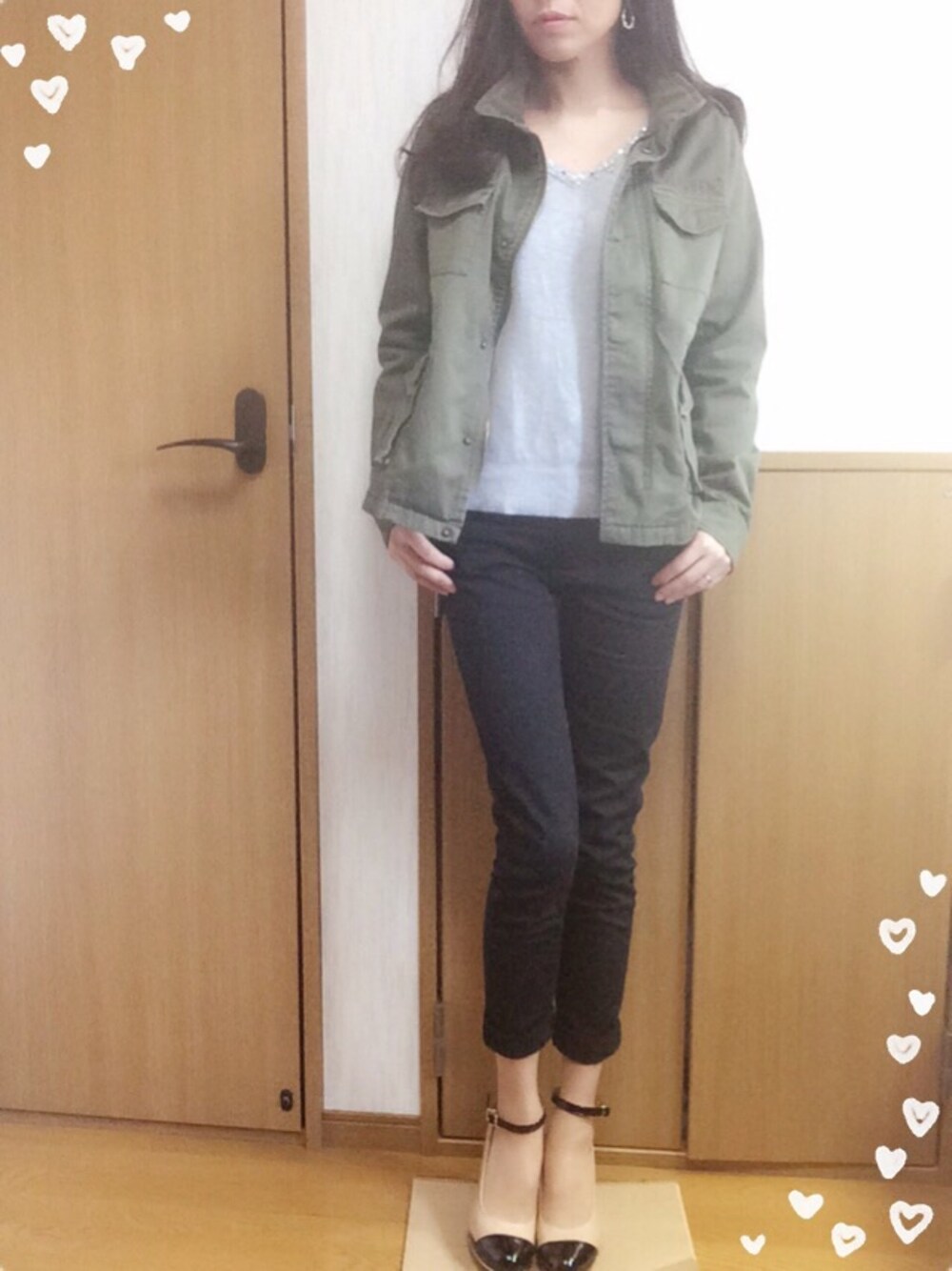 もう春なのに暗めのコーデになってしまったので、ロールアップ+パンプスで軽さを出しました☆ 薄手のJKなので、ちょっと寒かったですf^_^;)