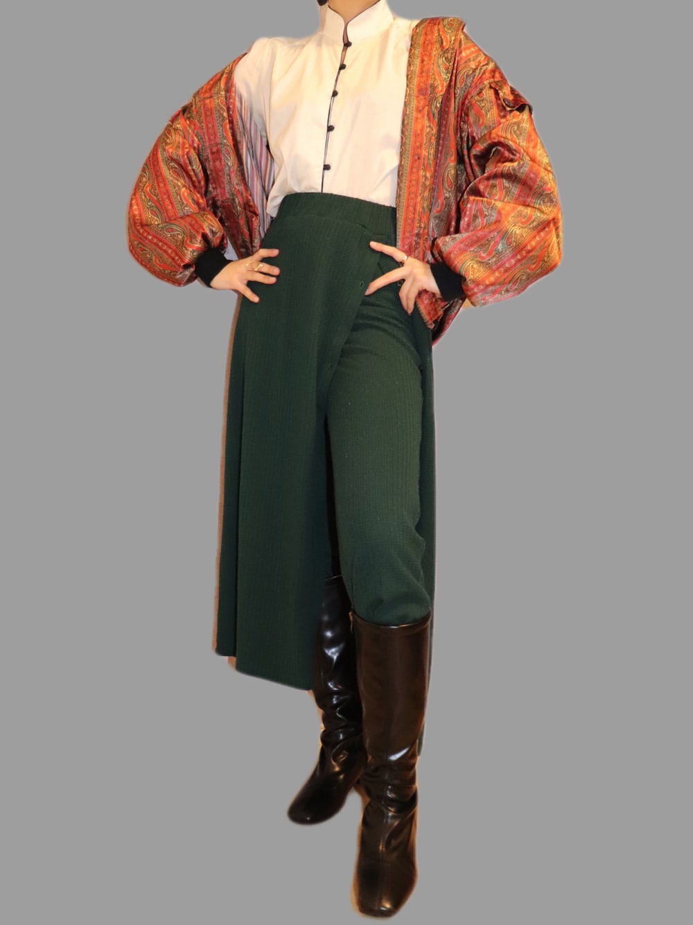 中華コーデ🐼 チャイナシャツと柄ブルゾンの相性良くて お気に入り◎