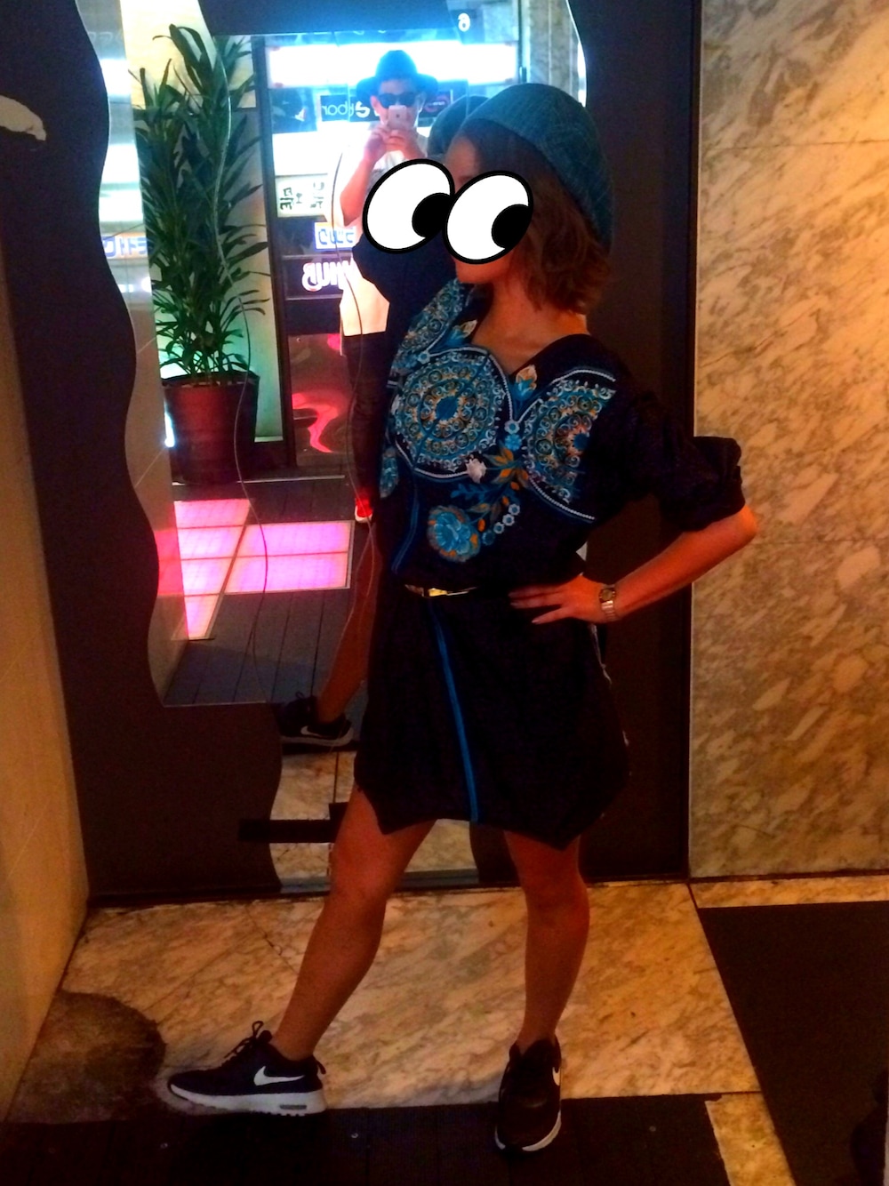 ポーズは完全にちょけてます。 すみません。 パキスタン産のワンピースと タイの職人さんが作った一点もののハンチングを合わせてみたら テンション上がりました。笑