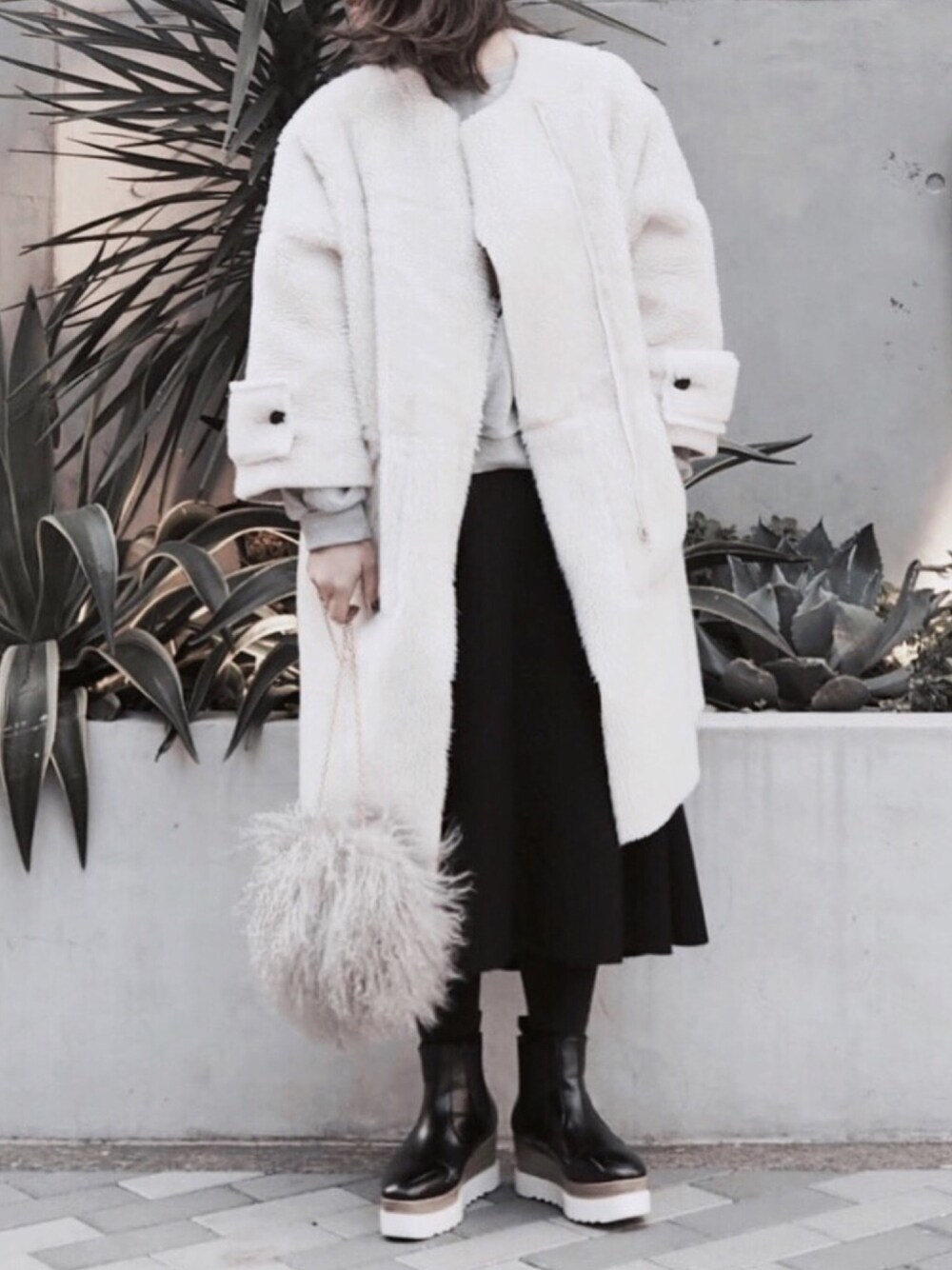 ボアコートぬくぬく♡ ㅤ 厚底靴 ショート丈でスカートと 相性◎ 【 Instagram / macha_mto 】