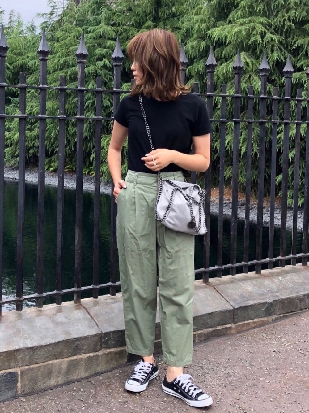【 Instagram / @macha_mto 】 カーキのツイルパンツは カジュアルコーデに👌 157cmでもいい具合の アンクル丈になってくれるのも💮 UniqloUのTシャツ着心地良すぎ♡!