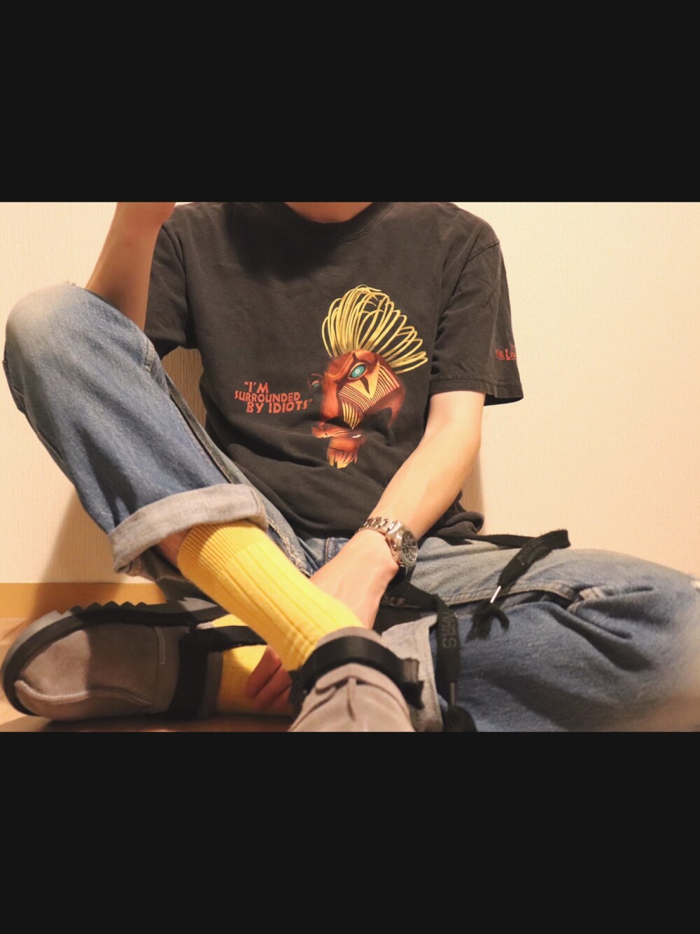 カジュアルな雰囲気。 シンプルにイエローの靴下でポイントを作りました。 BEATNIKがかなり使いやすい! デニムとの相性が良いです。 tops/lionking(used) pants/levi's shoes/reebok socks/freaksstore belt/noheroes