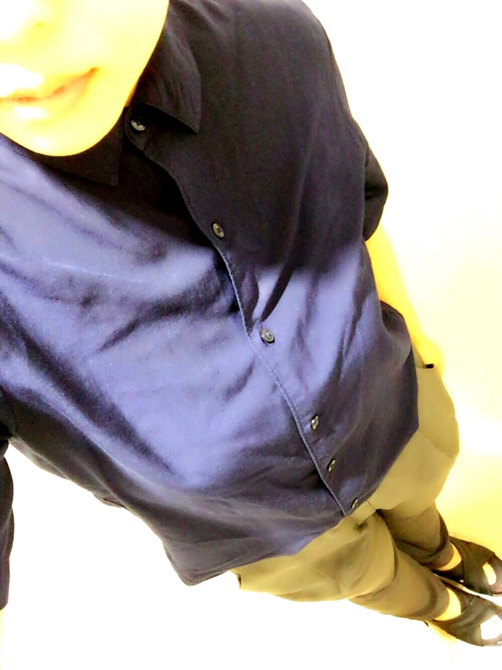 仕事では紺のシャツを着ることが多いです。 そして上下UNIQLO。。。 着心地が良いので好きです このパンツ。 トプ画のような髪型だったのですが、暑さと年齢を考慮して段々と短くなってきてます。 髪の毛が伸びてきて邪魔なので横をざっくりハサミできったらなんだかちょっと… シャツのボタンは上まで留めるので、少年感が漂ってます。