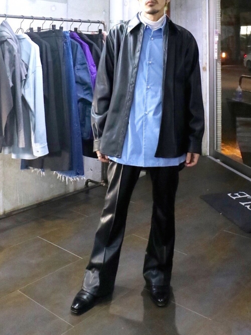 JUHAのレザーセットアップにshinyakozukaのクラシックシャツ。 中にはJUHAのタートル。 レザーシャツの抜群のかっこよさ。 ただ今LICLEオンラインショップにて会員登録して頂くと会員価格にてご購入いただけます。