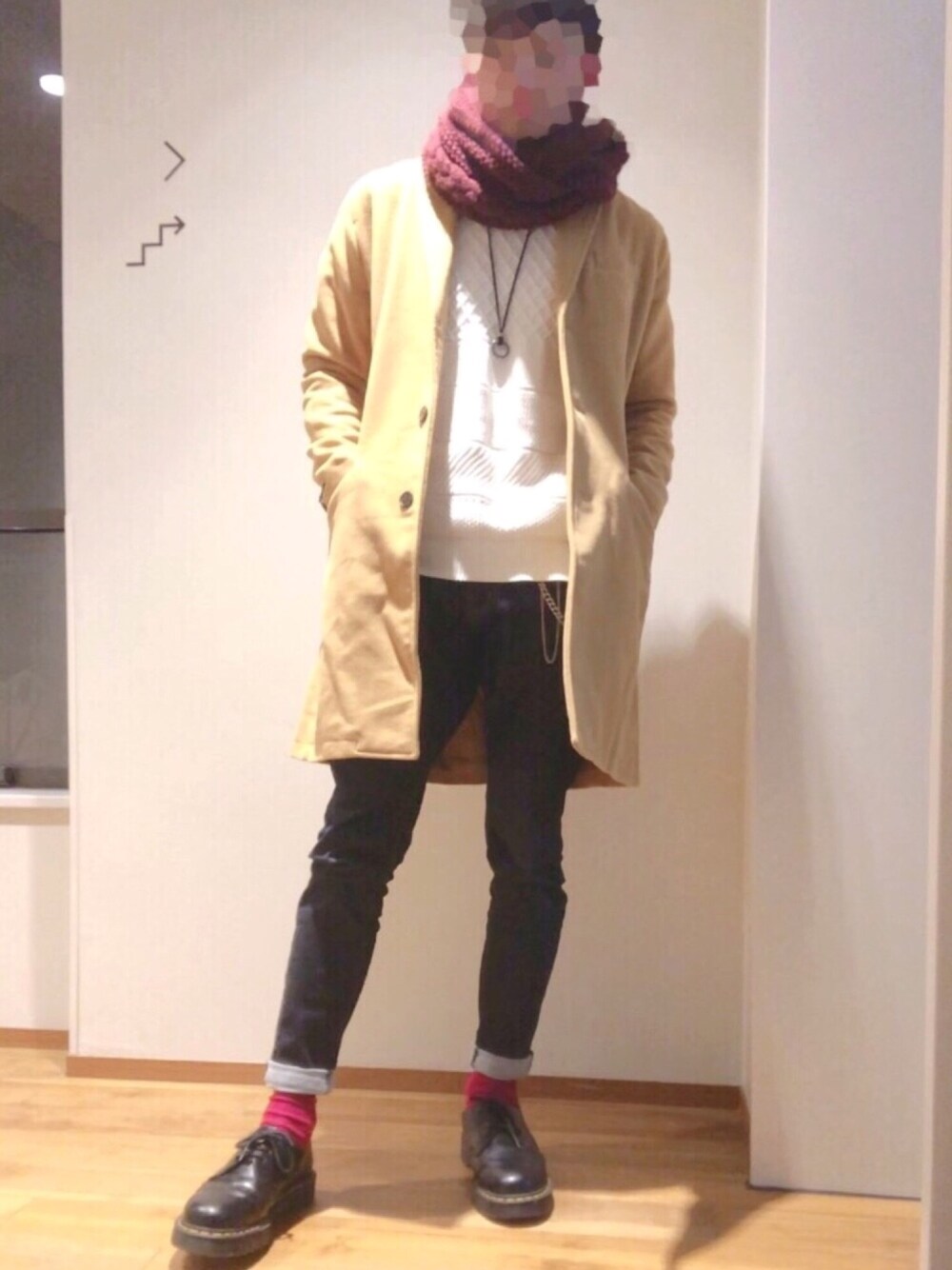 ほんとに寒いですね〜⛄ この時期は自分にとってコート必須です! 冬服の中で1番気に入ってるコーデで ブラック✕ホワイト✕ブラウン なんですけど ここでワンポイント👀💡 ワインレッド🍷 スヌード✕靴下を取り入れることで暖かい上にまとまりがでたかなって思ってます!😂