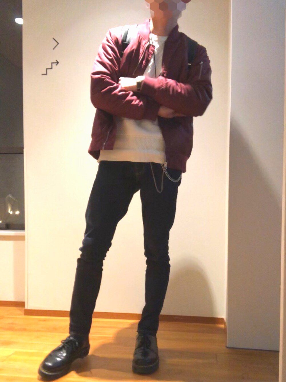 なかなか羽織りものでワインレッドは着ないですが 過去に投稿した(グリーン)が1番の人気コーデとなりましたので(僕の投稿内で) こちらも買っていたので投稿しました👀
