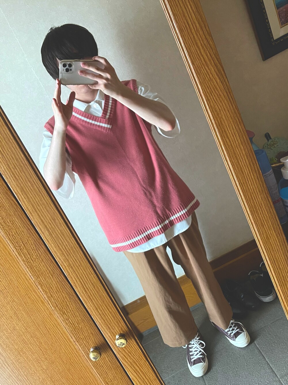 リューちゃんのスニーカー「converse コンバース ALL STAR STITCHING HI オールスター ステッチング ハイ 31303022 *BROWN」を使ったコーディネート