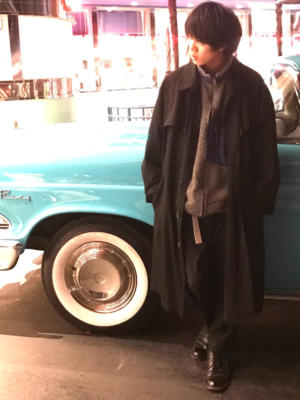 らいとのステンカラーコートを使ったコーディネート