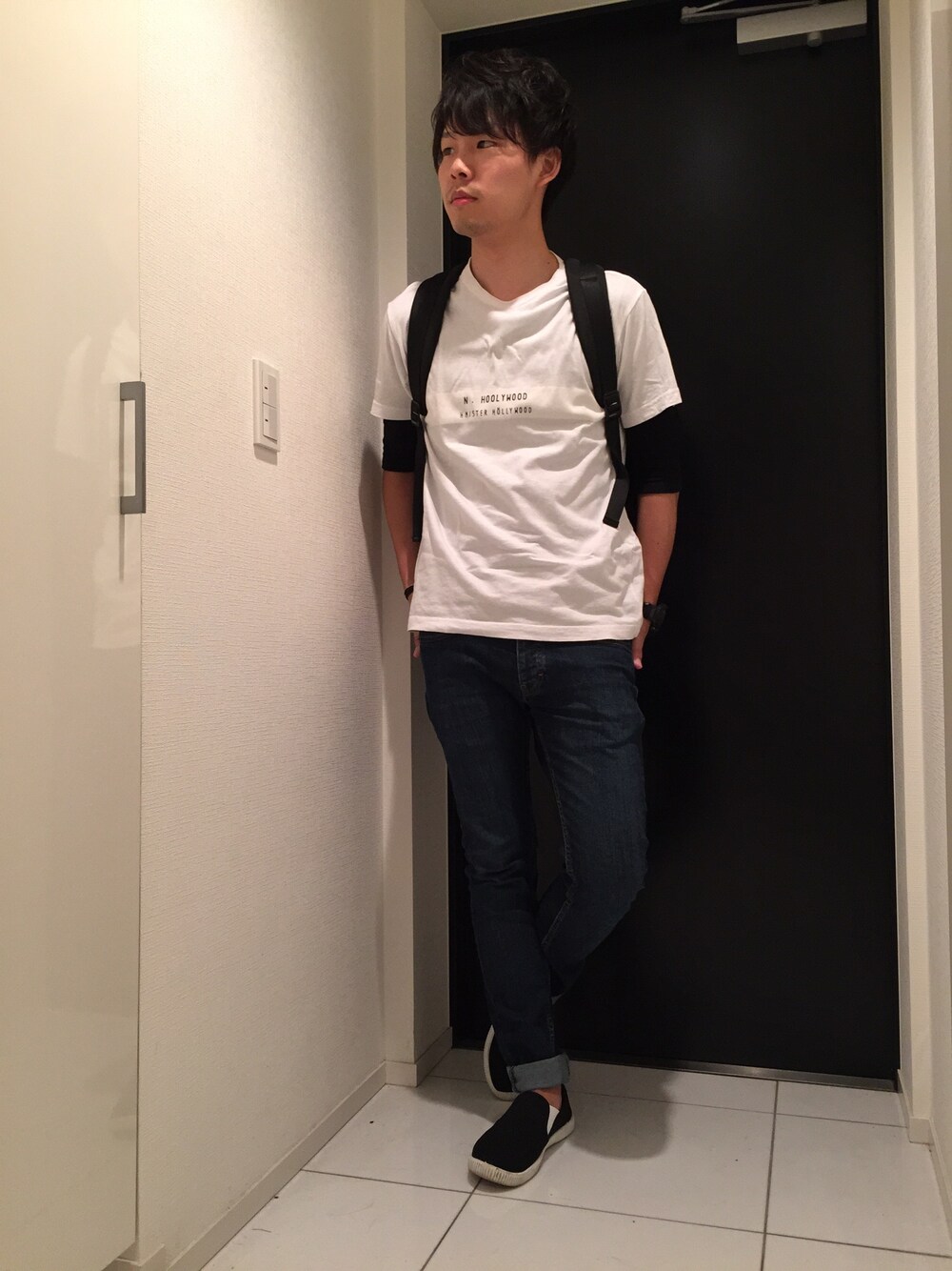 昨日は雨凄かったですね。 そんなに被害を喰らわなくて良かったですが。 そんな今日はTシャツのシンプルスタイル。インナーを着て若干の寒さ対策☻