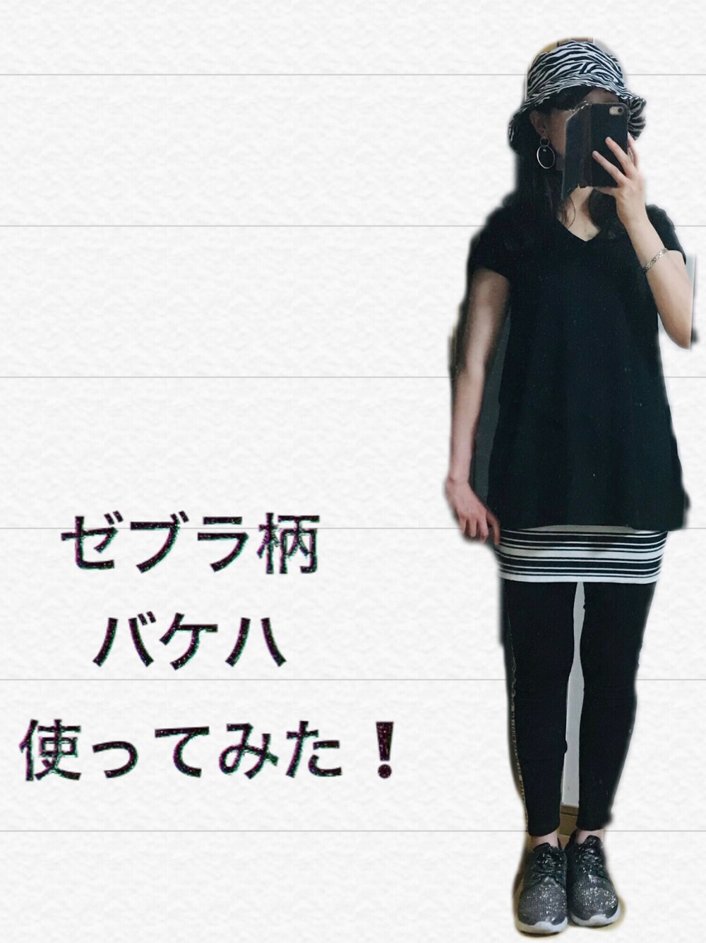 閲覧頂きありがとうございます❗️ ゼブラ柄のバケハをゲットしたので、早速使ったみたんですけど、普段柄モノに馴染みがないため、無難な合わせになっちゃいました。