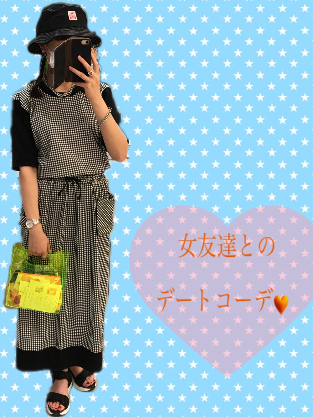 ご覧頂きありがとうございます😊 友達とショッピング行った時のコーデ。 ギンガムチェックのセットアップでカジュアルに^ ^