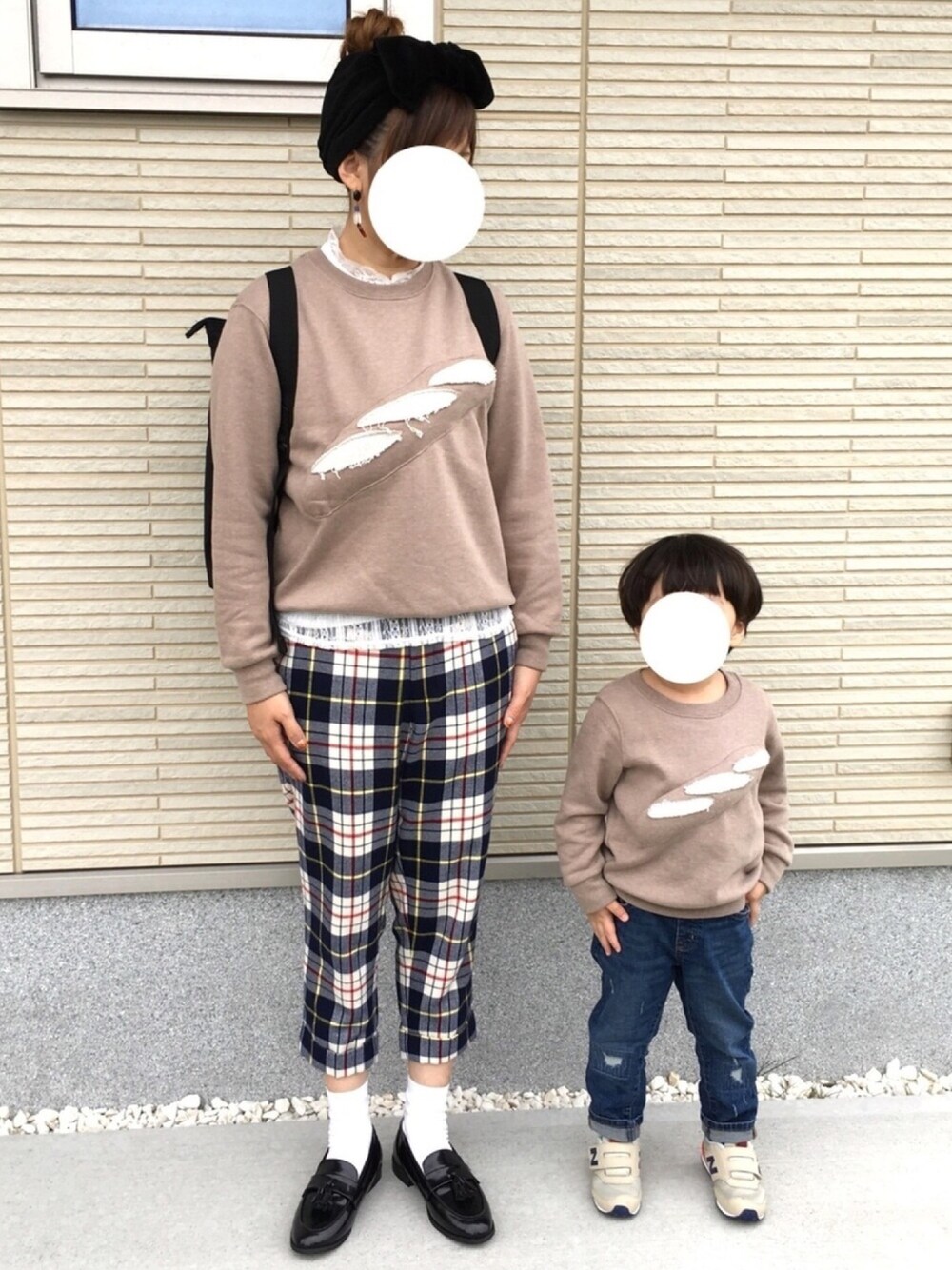 なんかのテレビで佐藤栞里ちゃんがトレーナーのインナーをレースブラウスにしてて可愛かったので、真似しました😄 息子はフランスパンが気になりまくりで触りながら歩いてますw