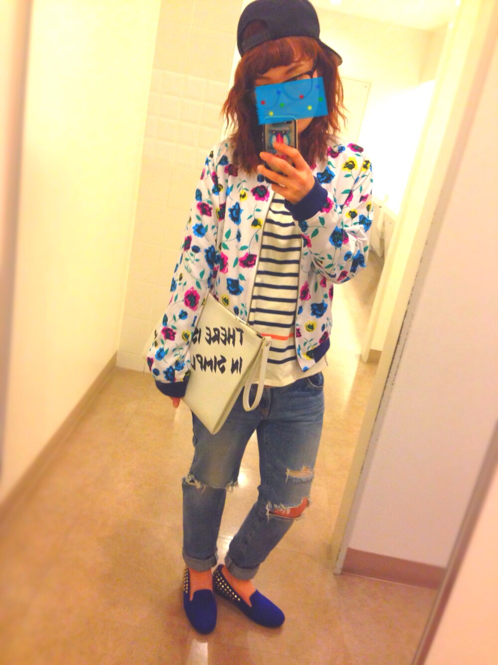 きむのブルゾン「メリーポピー リバーシブル ブルゾン」を使ったコーディネート