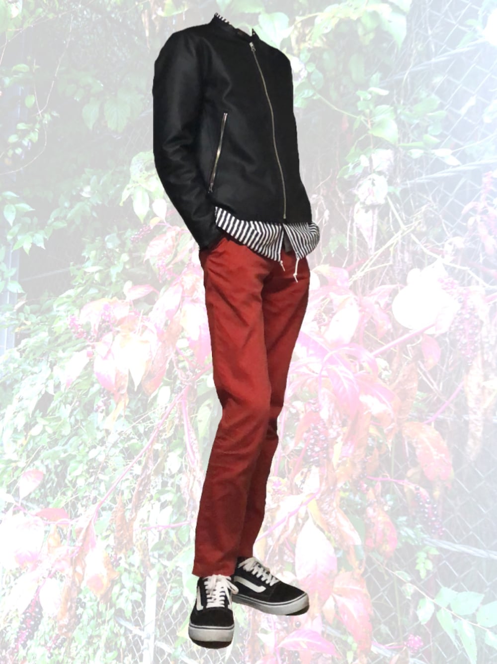 どうも。 落ち着いた色のパンツばっかり履いてたのでここらで派手なのをと。 モノトーンも良いんですが、やっぱり派手な色を着るとしっくりきますね。 そして何にでも合うVANS君がとても優秀です。 ではまた。