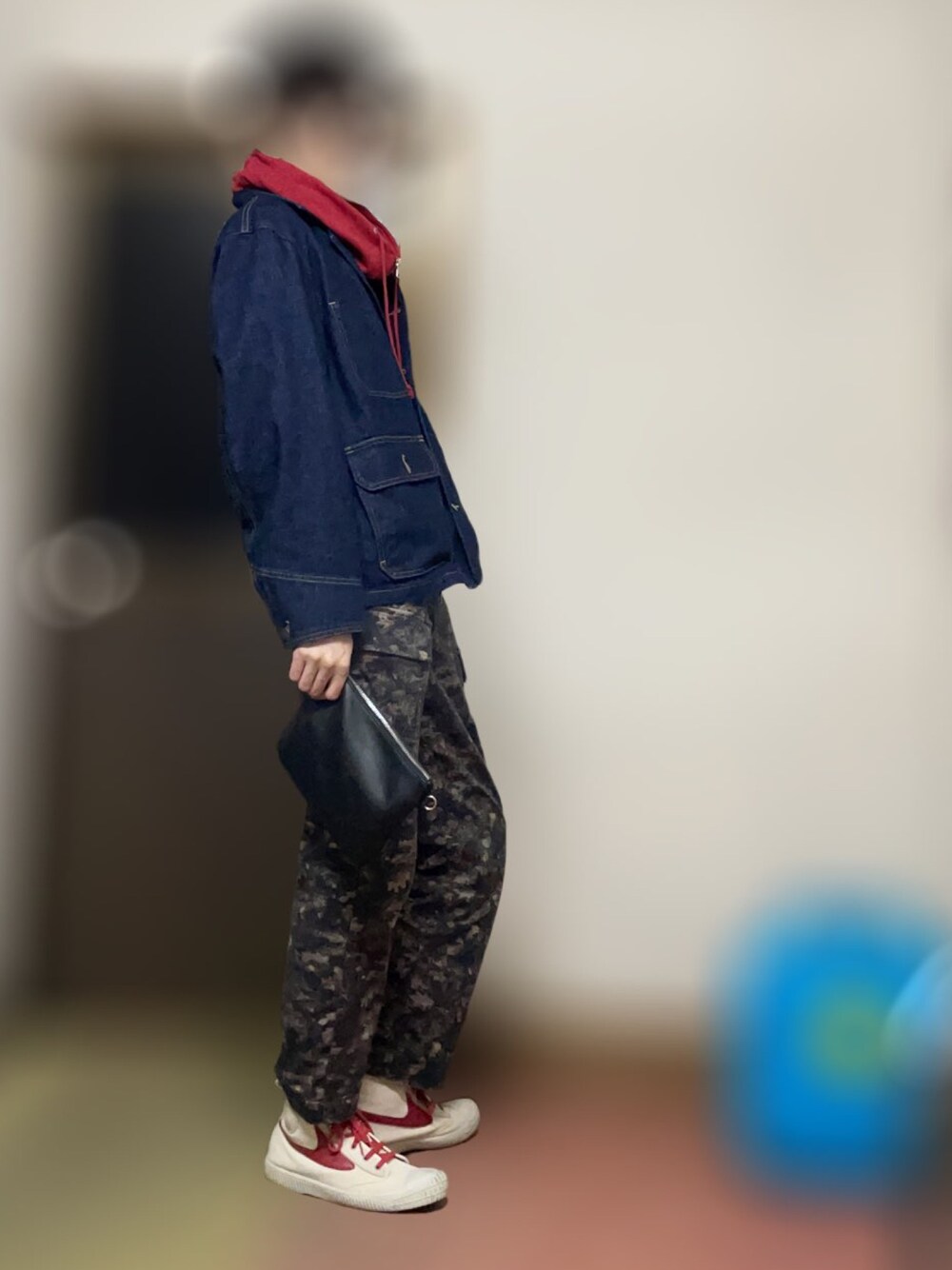 前回のコーデからアウターとスニーカーを変えるだけで大分雰囲気変わりますねっていう話。 全体的にカジュアルに振ったのでバッグはレザーでドレス味を。