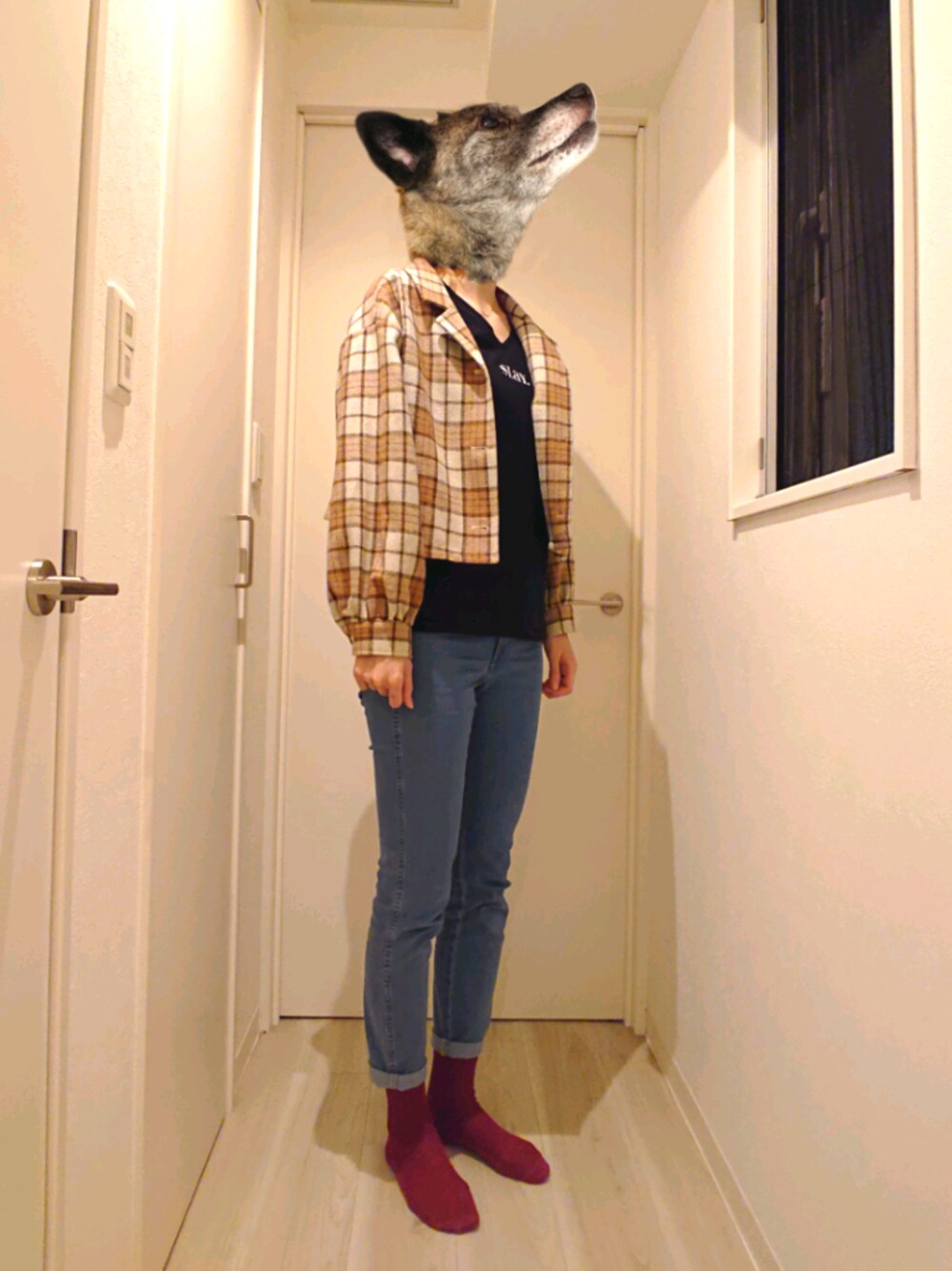 裾が気に入らないジーンズは、折ります。 シンプルなロンT&ジーンズにはアウターと靴下で攻めとくけん