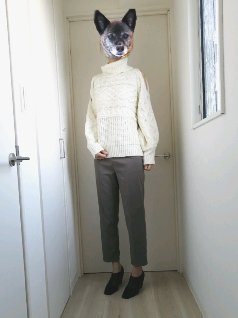 肩出しだから、スッキリした印象になった 編み目が大きめやけん、これだけだと寒い笑