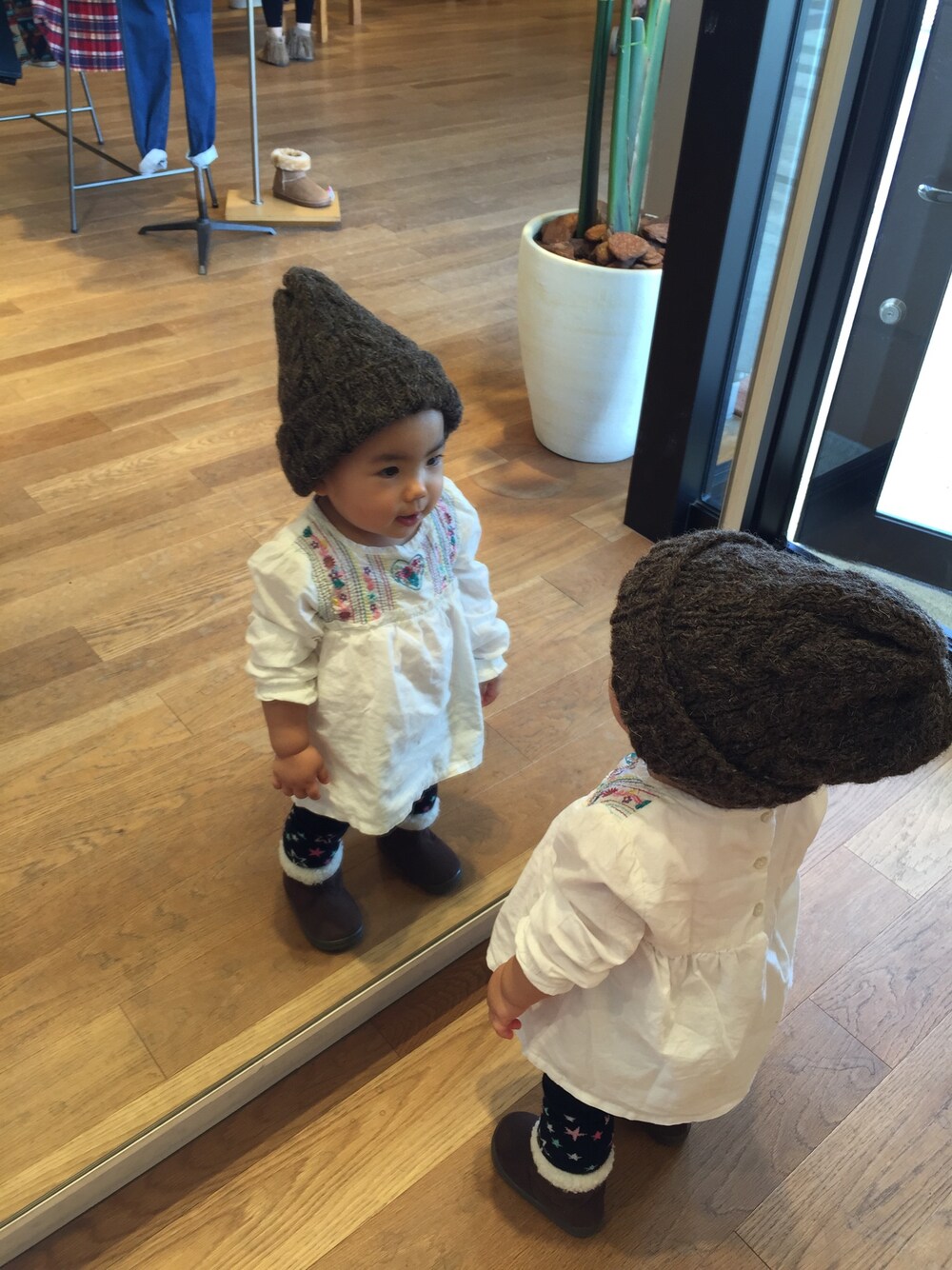 ワンピース:西松屋 ニットキャップ:ビームス ブーツ:西松屋