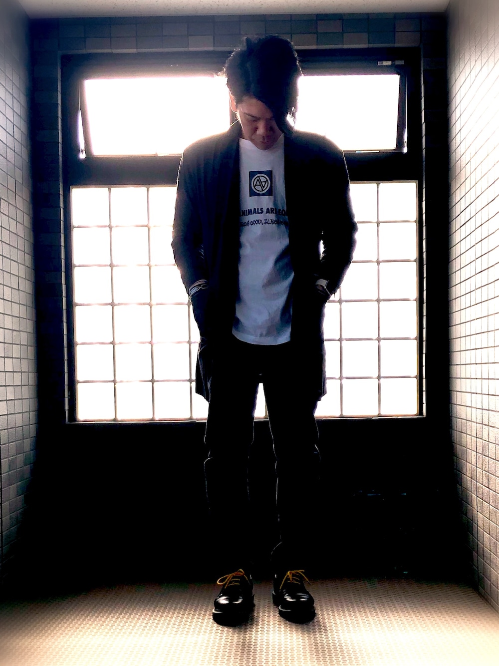 今日は少しフォーマルなコーディネート。 dirtytoyというブランドのロング丈ジャケットの形がとても良くて気に入ってます。 ZOZOのパンツと白Tシャツとマーチンでまとめたけどちょっと崩しすぎたかな… 今日もがんばりましょー (すごい逆光で撮ってしまい見づらい…撮影場所変えよっかな)