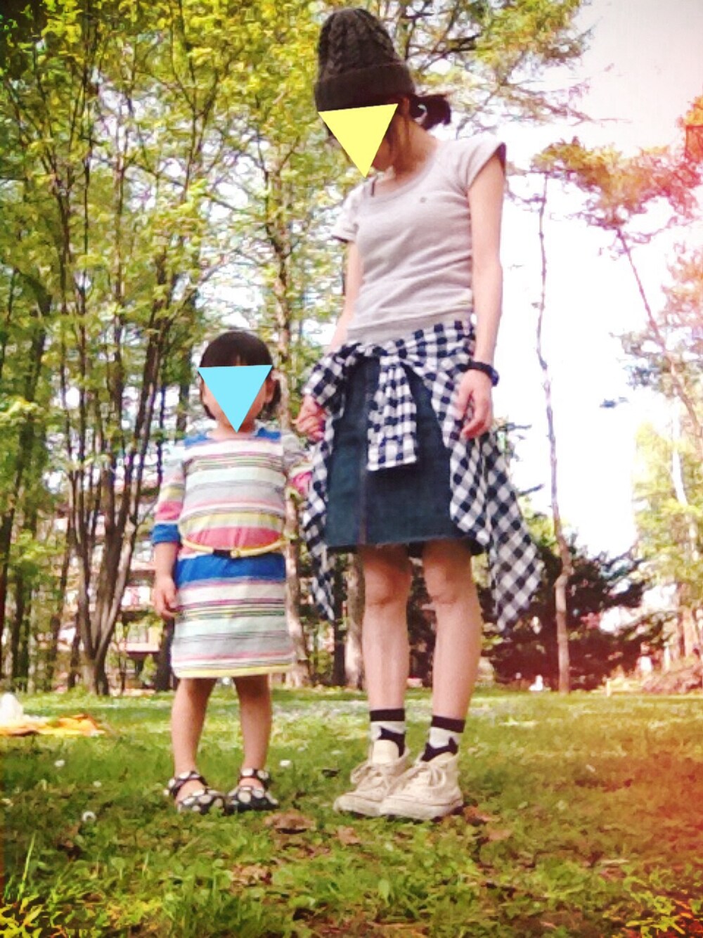 私 トップス ジムフレックス シャツ チャオパニックティピー スカート ブランド不明 靴下 ネネット ニット帽 ズッカ 時計 ズッカ スニーカー オールスター 娘 ワンピース H&M サンダル UNICA