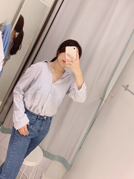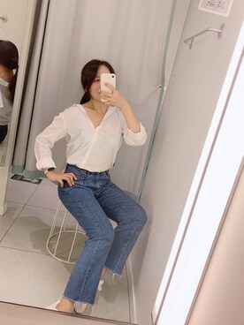 「H&M(エイチ・アンド・エム)のアイテム(シャツ/ブラウス、ホワイト系)」を使った、栗子君爱生活さん(レディース)の秋コーディネート