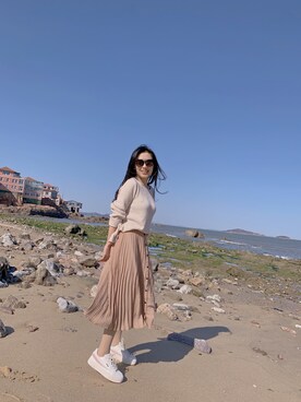 「FILA(フィラ)のアイテム(その他シューズ、ホワイト系)」を使った、栗子君爱生活さん(レディース)の夏コーディネート