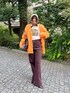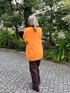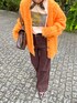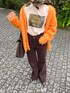 オレンジのシャギーカーデが主役🍊 暖色系でまとまりあるコーデにしました♪ 美脚に導いてくれるフレアデニム イチオシです✨✨ 身長:163cm 店舗名:本社店
