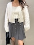 キャミには細かいパール、カーディガンにはビジューボタンと、どちらも凝ったデザインのアイテムです。 一緒に着てもかわいいですし、別々のコーディネートにも◎ キャミの肩紐は、結んで調節できるため、サイズ合わせもしやすいです。 プリーツミニと合わせて少しカジュアルな雰囲気のデートや、デイリーにも使えるコーディネートです✨ 骨格ウェーブ:イエベ秋 身長:152cm 店舗名:池袋ルミネ店